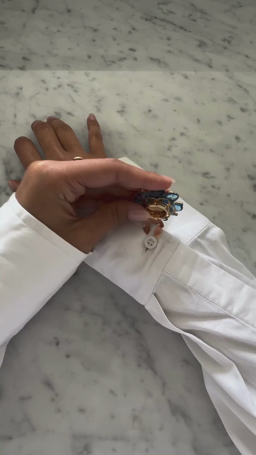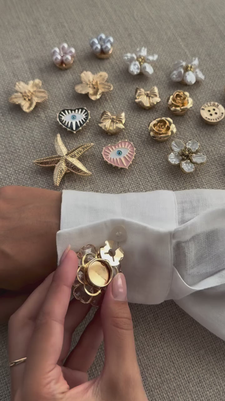 Button Amsterdam Covers: the easiest way to elevate any outfit. Clip them over your existing buttons and instantly transform a simple blouse or shirt into a unique look. Reusable, lightweight, and designed to stand out in the details. Designed in Amsterdam and shipped all over the world, our covers are made from high-quality treated copper, crafted to resist tarnishing and keep their shine. They fit most standard blouse and shirt buttons up to 11 mm and are comfortable enough for all-day wear.