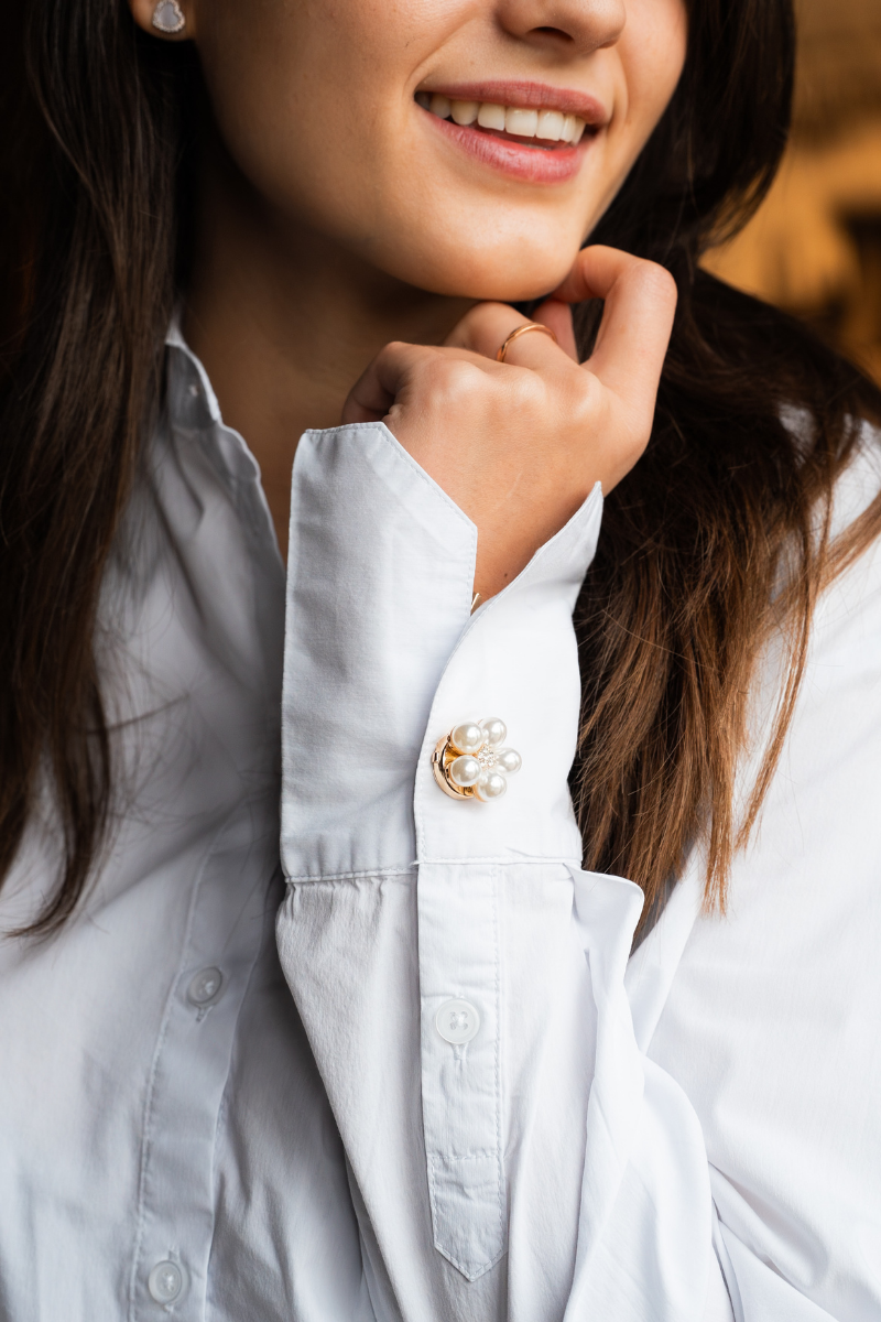Snap them over your existing buttons to instantly transform a plain blouse or shirt into a unique, polished look. Reusable, lightweight, and designed to stand out.